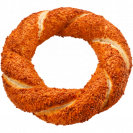 A bagel is a bread product originating in the Jewish communities of Poland. It is traditionally shaped by hand into the form of a ring from yeasted wheat dough, roughly hand-sized, that is first boiled for a short time in water and then baked.
